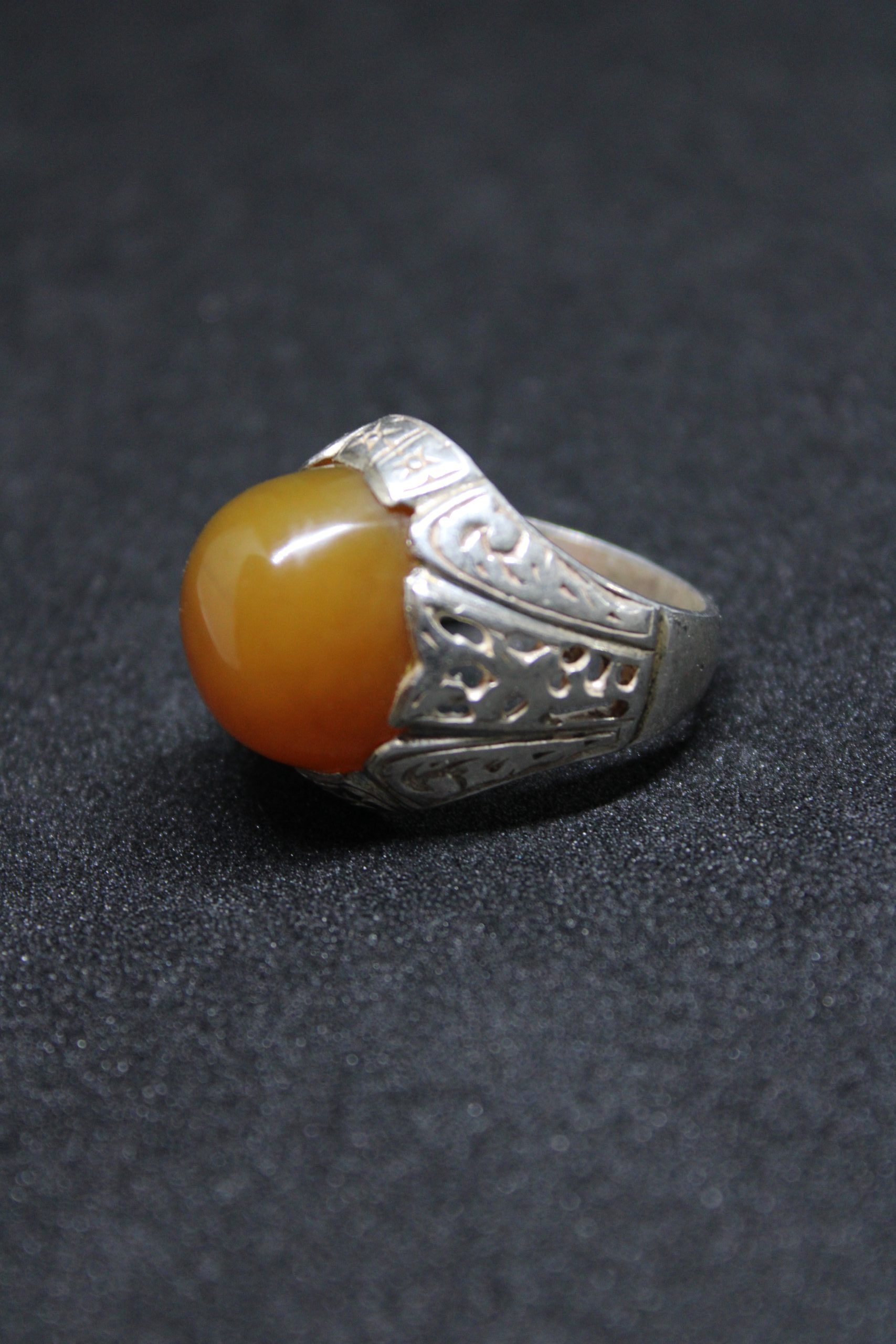 This stunning ring features a natural Yellow Agate gemstone set in a beautifully crafted sterling silver band. The vibrant, semi-translucent yellow hue of the agate symbolizes positivity, energy, and emotional balance. Designed with intricate details, this ring is perfect for daily wear or special occasions. Ideal as a thoughtful gift or an addition to your gemstone jewelry collection.