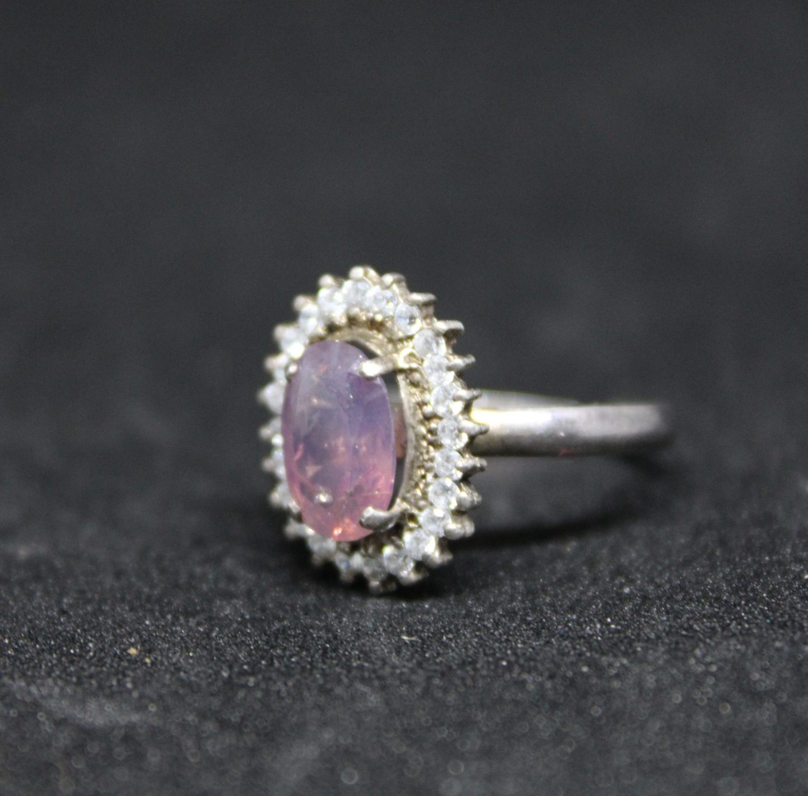 This breathtaking natural ruby ring features an exquisite oval-cut ruby at its center, surrounded by a dazzling halo of shimmering accent stones. The deep pinkish-red hues of the ruby make it a captivating statement piece, while the elegant sterling silver band enhances its brilliance. A perfect choice for engagements, special occasions, or a timeless gift, this ring exudes sophistication and charm.